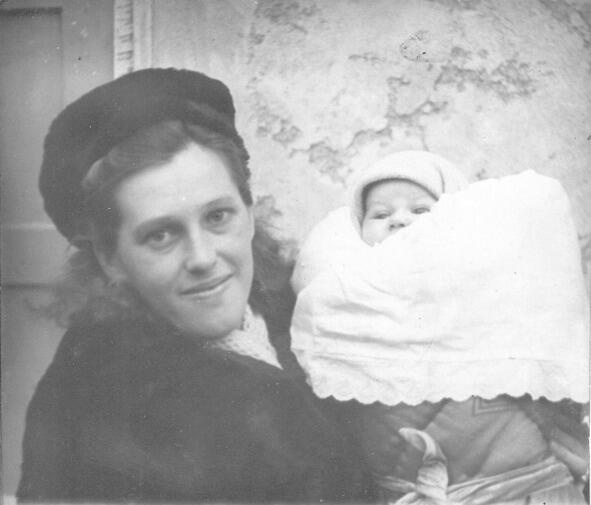 На этой старой фотографии моя мама, Савельева Кира Владимировна, и я совсем крошечный в одеяльце. На обороте надпись: «Калининград. Ноябрь, 1946 г.». Я родился 25 октября: здесь мне месяц, а то и меньше. Фотография была сделана в разбомбленном английской авиацией городе, до 4 июля 1946 года носившем прусское имя Кёнигсберг и взятом нашими войсками штурмом с сильным артобстрелом. Я долгое время думал, что сзади на снимке географическая карта, пока мама не сказала мне, что это стена: после войны везде были клочья штукатурки, следы пуль и осколков. По дороге с нашей окраины в центр города, на верхотуре разбомбленного многоэтажного дома, от которого остался лишь скелет, долгое время у всех на виду красовалась ножная швейная машинка, чудом не рухнувшая вниз с этажами: достать ее без кранов не могли