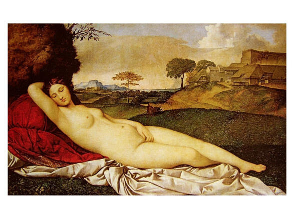 Джорджоне Что за чудо его «Спящая Венера»! Спокойный пейзаж, город на холме, эффектно скомканные простыни, мягкость и изящество. Перед нами само совершенство, идеал женской красоты, торжество вселенской гармонии и виртуозное мастерство исполнителя. Этой картиной можно любоваться часами.