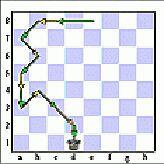 Черный король прошел путь на свою голгофу с поля b8 до поля d1 через всю доску! И когда кажется, он достиг тихой гавани (у белых нет больше шахов), слон, который стоял на h3, стреляя в пустоту и выполняя только охранные функции на поле е6, наносит свой удар.