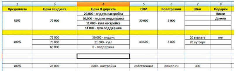 Рис. 1.1. Пример анализа конкурентов среди интернет-маркетинговых агентств (фрагмент)