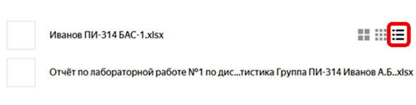 Выберем другой формат отображения подробный список. Для этого в правой верхней части окна имеется иконка в форме списка см. рисунок.