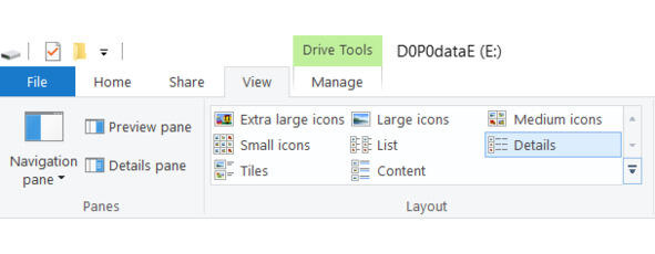 Проводник может оставить самую важную часть названия за кадром, если неудачно выбрать режим вывода списка файлов. Попробуем вариант вывода списка файлов в виде таблицы: