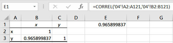 КОРРЕЛ (диапазон_x; диапазон_y).