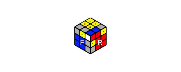 Поскольку начинается с кувалды (формула в прошлой главе заканчивалась кувалдой, то ходы против часовой стрелки тоже меняются местами (начинаются с хода R1). В середине цепочки есть ход R (как будто вторая буква от начальной и конечной части UR формулы из главы Левая молния) и заканчивается формула U2R. Ну, а если кто обратил внимание (R1 U1 R U1 R1 U2 R) это алгоритм рыбка, если смотреть на глаз URB. Алгоритм назовём рыбкой сзади.