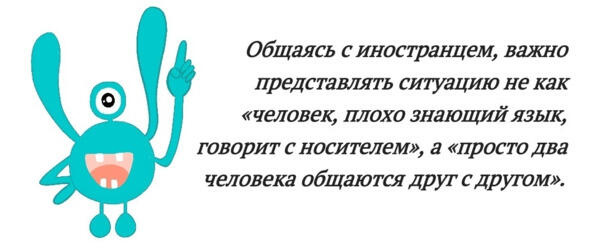 Уверенным пользователем английского языка я стала, когда начала активно работать с иностранцами. Помню, как меня лихорадило перед первым разговором по телефону с англичанином. Будет ли понятно, что он мне скажет? Смогу ли я вспомнить нужные слова и фразы? И в процессе беседы иногда больше думалось о простом понимании слов, нежели о сути разговора, пресловутый языковой барьер долго не давал мне покоя. Несколько месяцев было очень сложно. Потом практика общения и привычка как-то «размыли» этот страх. Разговаривая с иностранцем, важно представлять ситуацию не как «человек, плохо знающий язык, говорит с носителем», а как «просто два человека общаются друг с другом».