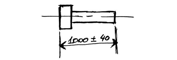 Инженер-конструктор продумывает КОНСТРУКЦИЮ и рисует чертёж. На чертеже он указывает НОМИНАЛЬНЫЙ РАЗМЕР заданное значение размера. Кроме этого, конструктор задаёт ДОПУСК, указывая предельное (максимальное ДОПУСТИМОЕ) отклонение от номинального размера. Поэтому на чертеже можно встретить надпись типа 1000±40. Если не указаны единицы измерения, то скорее всего это миллиметры. Пример чертежа с указанием номинального размера и допуска приводится на рис. 5.1.