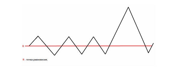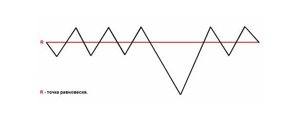 Первая, более жесткая и интенсивная форма на рынках ценных бумаг это форма справедливого уравновешивания энергии 50/50, визуально выглядит она в виде цикла.