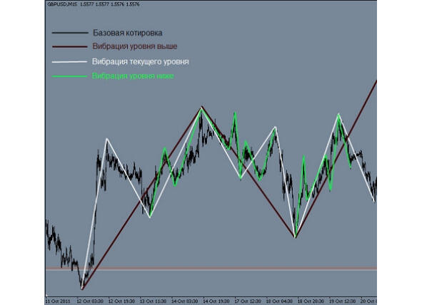 Отличие от предыдущей формы вибраций, в основном в том, что она имеет свойство перескакивать на большое количество уровней наверх или вниз, по отношению к предыдущему циклу. Ниже пример: