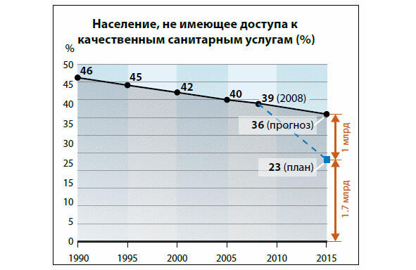 Рисунок 1.1 Население, не имеющее доступа к качественным санитарным услугам (%) [123]Одна из наиболее обсуждаемых проблем современной экономики якобы необходимый человечеству компромисс между экономическим развитием и сохранением окружающей среды. В этом разделе мы проанализируем примеры альтернативных путей дальнейшего развития, характеризуемые лучшей взаимодополняемостью материального, человеческого и природного капитала.