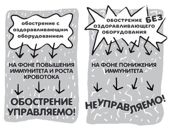 Забегая наперед, отмечу, что зачастую вы принимаете оздоравливающие сеансы, и вдруг болезнь начинает обостряться. Например, у меня остеохондроз, прогреваюсь на турманиевом ковре 37 дней подряд, внезапно позвоночник начинает болеть сильнее. Чего вдруг? До этого же боль была не такой острой? Потому что наступает реакция к улучшению, или то, что доктора называют обострением.