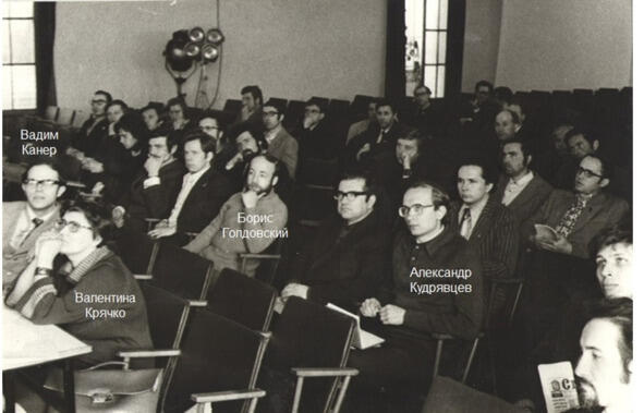 Справа налево: 1-й ряд: В. Крячко, В. Канер; 2-й ряд: А. Кудрявцев,?, Б. Голдовский (Ленинград),?,?