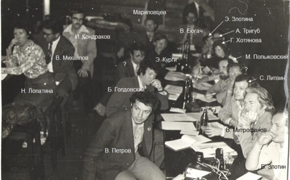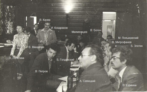 Ленинград, 1980. Слева направо: 1-й ряд спиной: В. Петров, Г. Альтшуллер, Е. Альтшуллер, В. Митрофанов