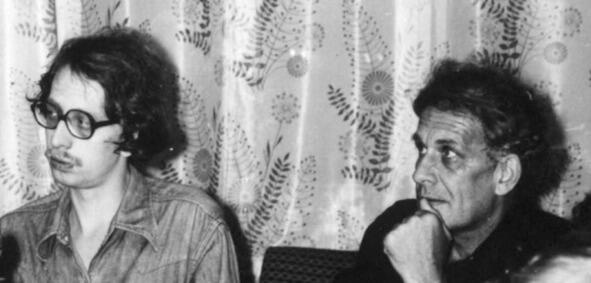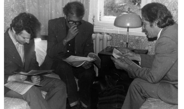 Петрозаводск, 1980. Знакомство с материалами до начала конференции. Слева направо: В. Петров, Г. Альтшуллер, В. Митрофанов