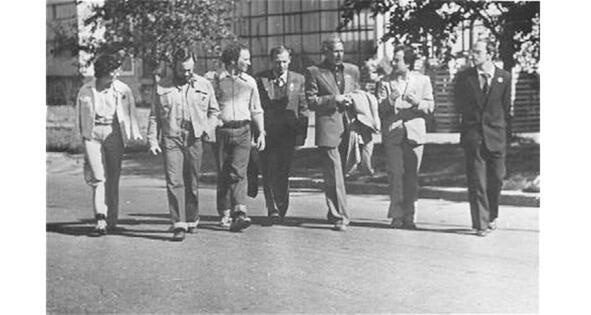 Слева направо:?, В. Горбунов?, Ю. Шеломок, Б. Злотин, И. Куликов, В. Петров,?