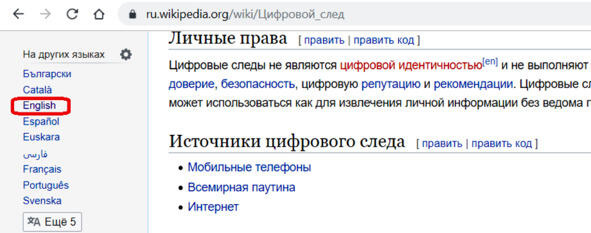 Задание. Прочитайте в Википедии статью «Цифровой след» на английском языке. Сравните содержание статей.