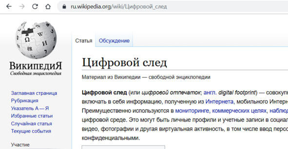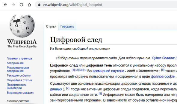Задание. Прочитайте в Википедии статью «Цифровой след» на русском языке.