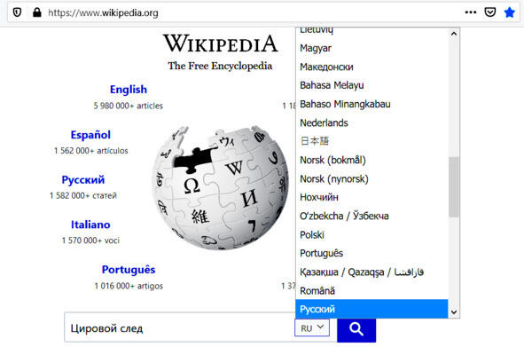 Найдём на сайте Википедии указанную статью см. рис. 2.1. Выбираем в списке русский язык.