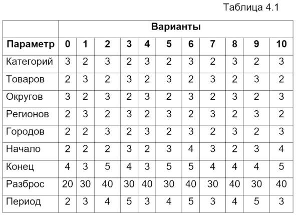 Варианты заданий приводятся в Таблице 4.1. Для каждого варианта имеются свои параметры. Что эти цифры означают, мы скоро узнаем. Но для начала запишем их в отчёт.