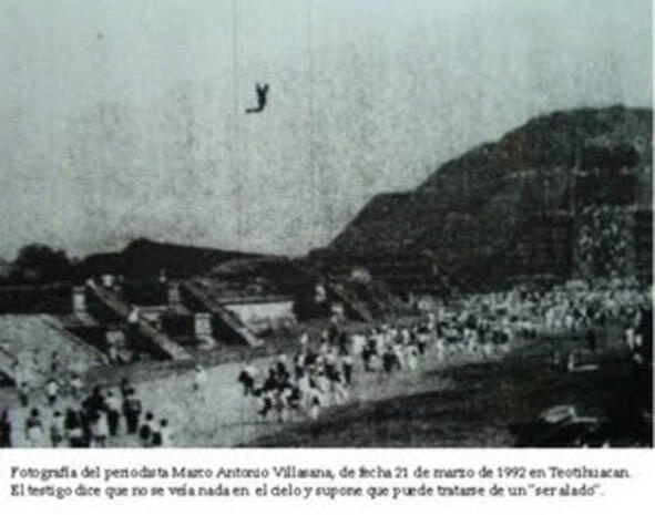 Хотя это и основной вопрос магии, можно сказать причина, почему и появились маги, Карлос Кастанеда долго не писал о хищнике. Информация была слишком шокирующей, а модальность того времени не позволяла ее обнародовать. Но когда в 1992 году появилась фотография, сделанная буддистским исследователем на карнавале по случаю летнего равноденствия в Теотиуакане, где на одной из увеличенных фотографий оказался воладор, который, нажравшись, материализовался и был схвачен камерой, Карлос решил рассекретить эту информацию на своих семинарах. А в 1997 году вышла книга «Активная сторона бесконечности» (англ. The Active Side of Infinity), где целая глава «Черные тени» была посвящена теме хищника. Я советую ее прочитать очень внимательно. Вы видите фотографию, где воладор размером с двух-трехэтажный дом, напоминающий человека с поднятыми над головой руками и согнутыми в коленях ногами, попировал в месте, где было большое скопление людей, стал видимым и попал на камеру.