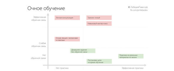 Я составил таблицу сравнения эффективности разных форматов очных тренингов.