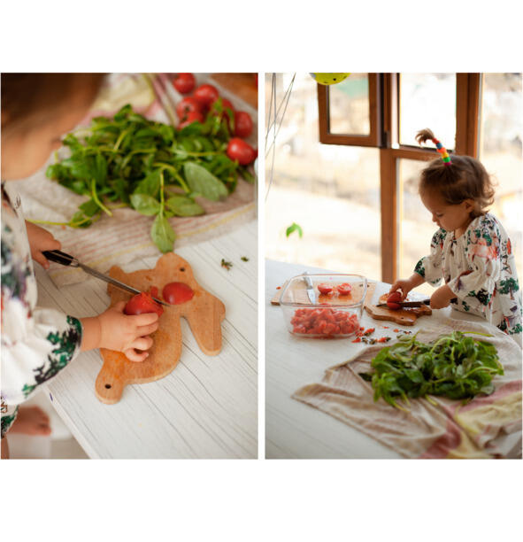 Используйте любимую посуду, самые любимые салфетки, сочные и яркие ингредиенты, мягкие фартуки, удобную столешницу малыши с самых пеленок считывают и запоминают то, что их окружает. На кухне тоже формируется вкус. Ничего не проходит бесследно.