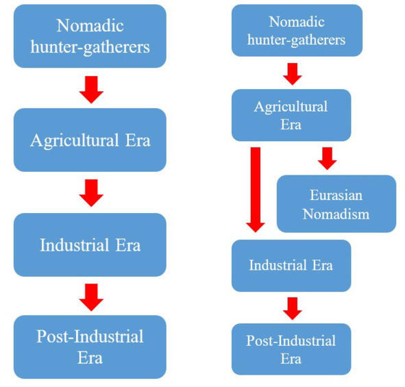 The Nomadic Civilization: modern perception (left) vs true science (right)