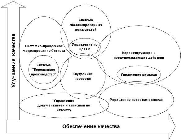 Рис. 2.6. Модель технологического развития компании по двум векторам системы качества: обеспечения и улучшения