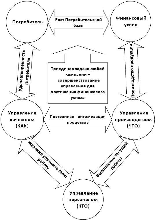 Рис. 2.5. Модель встраивания компании в цифровую экономику при помощи решения триединой задачи: управления персоналом, производством и качеством