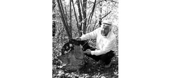 Спустя некоторое время, мы оказались в довольно густой чаще леса. Толстым слоем лежала на земле опавшая листва. Медленно продвигались мы вглубь, отодвигая в сторону и ломая высохшие ветви деревьев, которые преграждали нам путь. Мы прошли всего лишь несколько десятков ме-тров от зиярата Гебек шейха, как услышали голос идущего впереди Сайпутдина-хаджи. Подойдя ближе, мы увидели его стоящим у надмогильного камня. Обратившись в сто-рону Каабы, он читал молитву, прося у Всевышнего Аллаха сделать обитателем Рая тех, кто покоился в этой могиле.