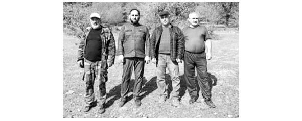 с. Дылым. Перед восхождением на священную гору Гебек-кала. Слева направо: Пайзутдин Зайналабидов, Магомед Баширов, Багаутдин Аджаматов и Магомед-Апанди Дадаев