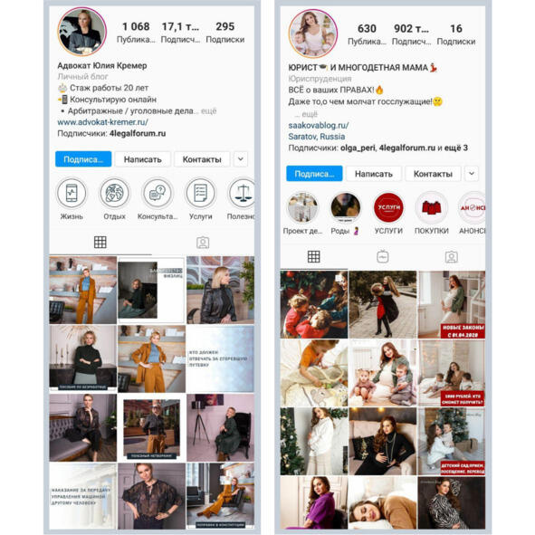Но правила существуют для того, чтобы их можно было нарушать! Есть юристы, которые активны в инстаграм, при этом не особо переживают по поводу наличия личных фото для визуального ряда и активно используют «стоковые картинки». Это не мешает им активно продвигаться в Instagram. Главная ценность все же в полезном контенте. Добавим для мотивации несколько примеров: