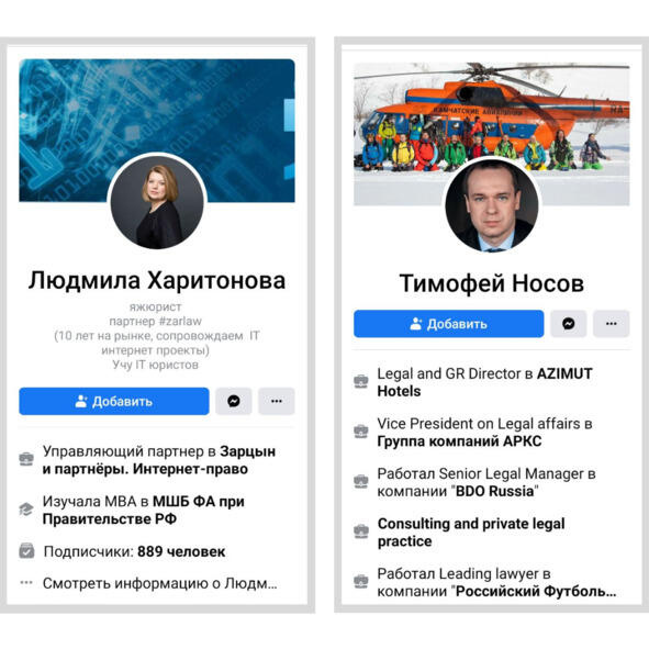 Примеры юристов, которые используют ФБ для усиления и поддержания контактов: