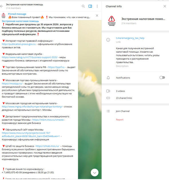Удачный пример: канал налоговой компании Сальдо Фаворит. Это тегеграм-канал для получения экстренной налоговой помощи.