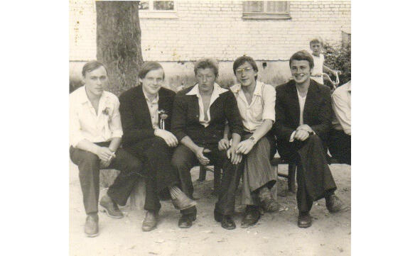 Немножко взрослые: Сашка Бобров, Шейкин, Кеша в центре. Дальше я и Витька Брико