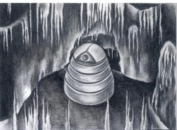 Я нахожусь в пещере, которая из небольшого прохода плавно переходит в огромный подземный зал. Свет какой-то рассеянный, создаётся светящимся мхом на потолке пещеры. На одной стороне находится русло подземной реки, на другой, немного в отдалении, высокий сталагмит. Со стороны высокого сталагмита доносятся голоса. Я проворно на него влез.