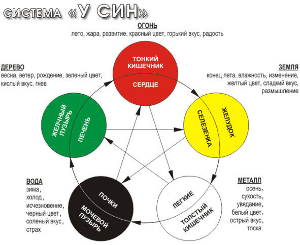 Каждая стихия содержит органы и системы связанные между собой определёнными связями в единый человеческий организм.
