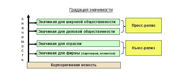 Ньюс-релиз содержит такое сообщение, которое является значимым для самой компании, в лучшем случае для отрасли. Это очень важное отличие от пресс-релиза, который претендует на общественную значимость. На практике большинство релизов является, по сути, ньюс-релизами их значимость ограничена масштабом корпорации или отрасли.