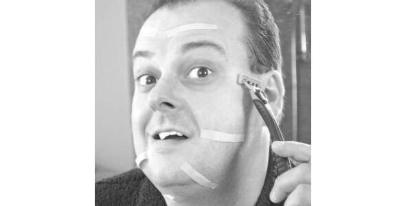 Im shaving my cheek with care.
