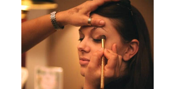 Нанеси́ губну́ю пома́ду на гу́бы.