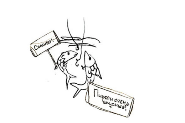 На пирог с курицей, отозвался Ник, достал из своего рюкзака пирог, отломил кусочек и нацепил его на крючок.