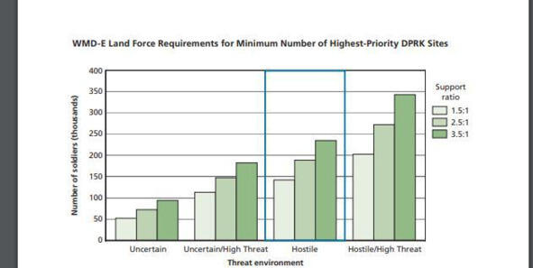For example, in our DPRK base case, our estimate for the Uncertain environment a relatively favorable environment for conducting WMD-E operations required an estimated 73,000 troops,