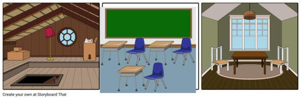 Use the narrators descriptions to help you draw three Scenes and the characters.