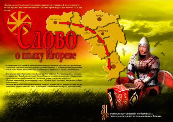 «Слово», известный памятник древнерусской литературы. В основе сюжета поход русских князей на половцев. События происходят, без малого 1000 лет назад. А шёл князь Игорь по тем местам, где сейчас проживаем мы.