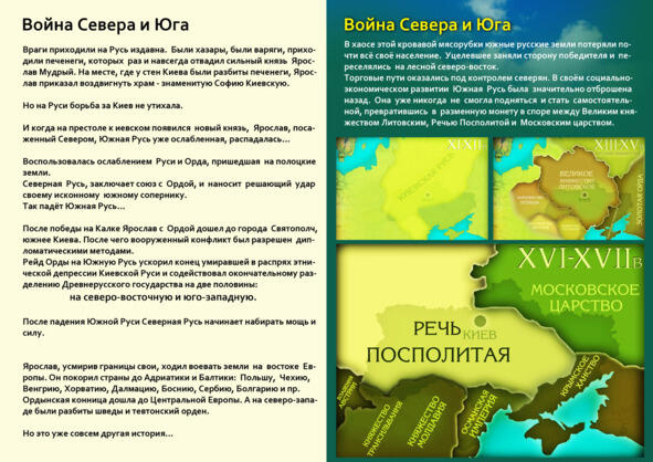 В итоге, Северная Русь объединившись с языческой Ордой, одолеет Южную Русь и она потерялась во времени, став окраиной земель русских Малороссией.