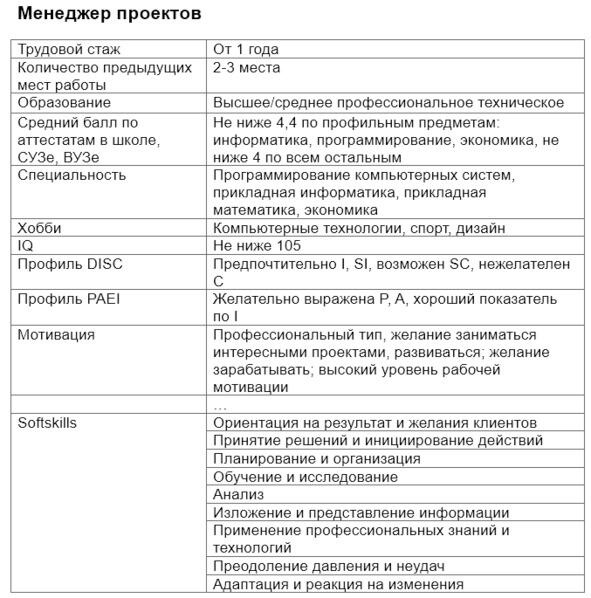 Ниже пример профиля менеджера проектов. Шаблон можно скачать по ссылке.