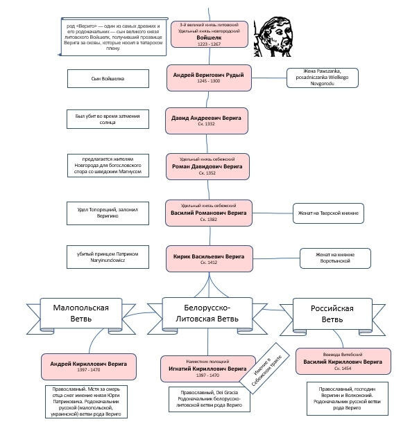 Игнатий Вериго, себежский князь (см. далее) являлся прародителем белорусско-литовской ветви.