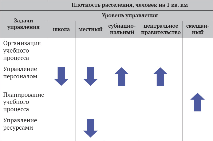 Таблица 3. Связь между плотностью расселения и управлением школой