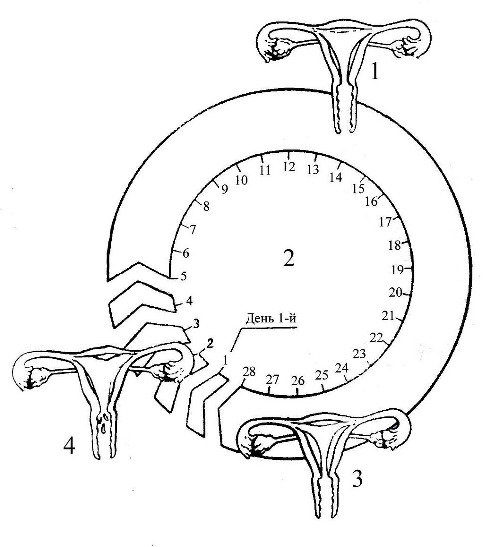 У большинства женщин менструальный цикл длится около 28 дней. Первый день менструации считается началом цикла, первым его днём. 1. К 14 му дню цикла яйцеклетка попадает в маточную трубу. 3. Стенка матки набухает от прилива крови в ожидании оплодотворённой яйцеклетки. 4. Если в матку не попадает оплодотворенное яйцо, то за несколько дней она освобождается от слоя выстилающий поверхность матки, отторгается и выходит наружу. Это и есть менструация.