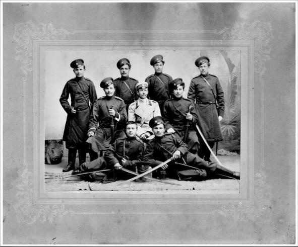 Фото 1895 года. Замостье. 10 казачий полк. Крайний справа Стецков Дмитрий Никифорович, казак х. Нижне Митякинского.