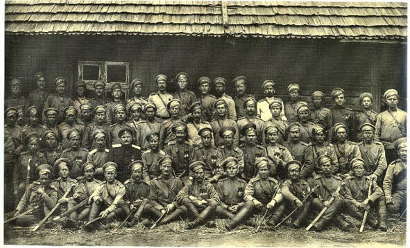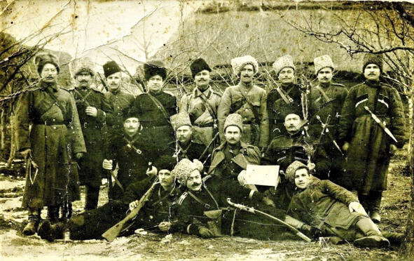 Полусотня 10 Донского казачьего полка. В тёмном кителе есаул Лобов Григорий Петрович, уроженец станицы Митякинской.